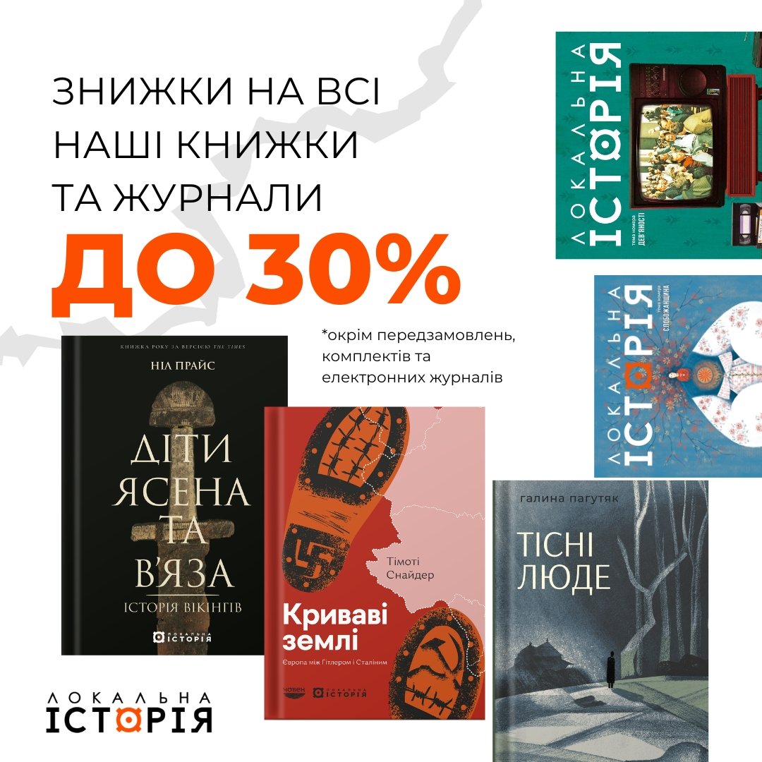Знижки не діють на передзамовлення, комплекти та електронні версії журналів і не сумуються з іншими промокодами. Не пропустіть нагоду поповнити свою бібліотеку бажаними виданнями «Локальної історії» за найкращими цінами!