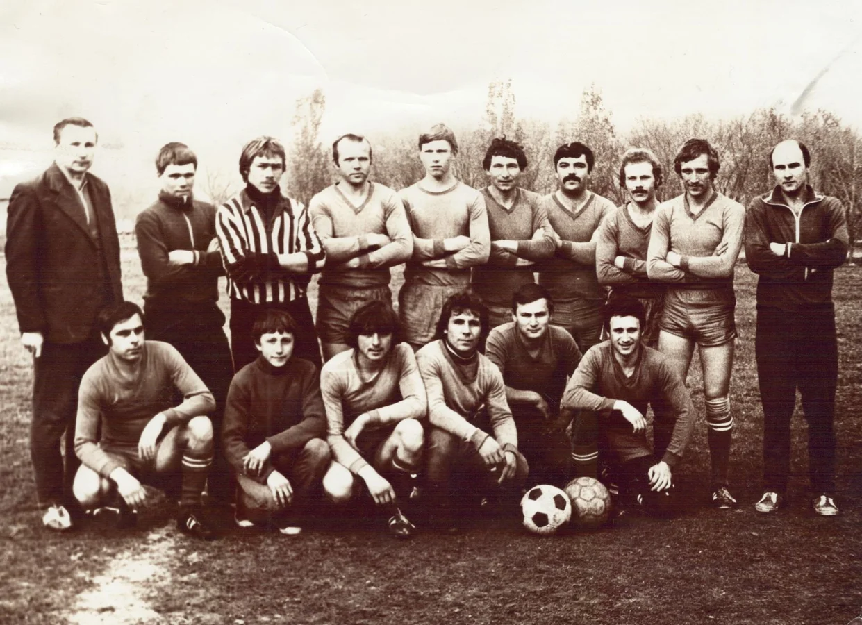 "Коли приїжджала команда з іншого села, наш стадіон був заповнений глядачами. Це було справжнє свято футболу, і ми завжди були в призерах!" — пригадує Микола Соколов, який був учителем фізкультури, гравцем і тренером команди "Колос". На фото 1978 року він — капітан команди, крайній справа.