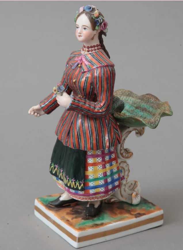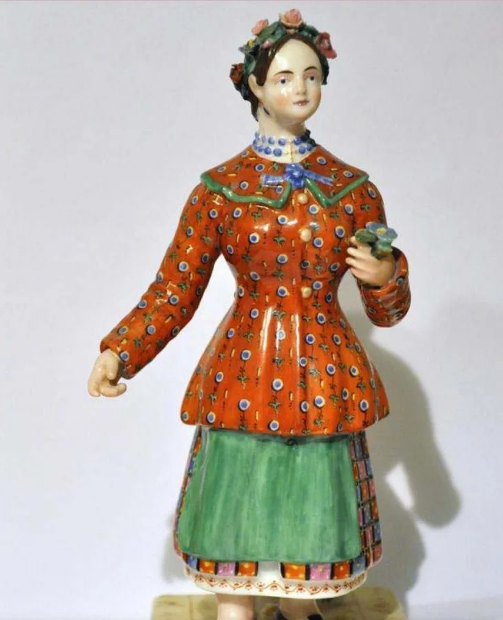 Дівчина в малоросійському костюмі. Порцелянова фігура. Мануфактура А. Миклошевського. Середина XIX ст.