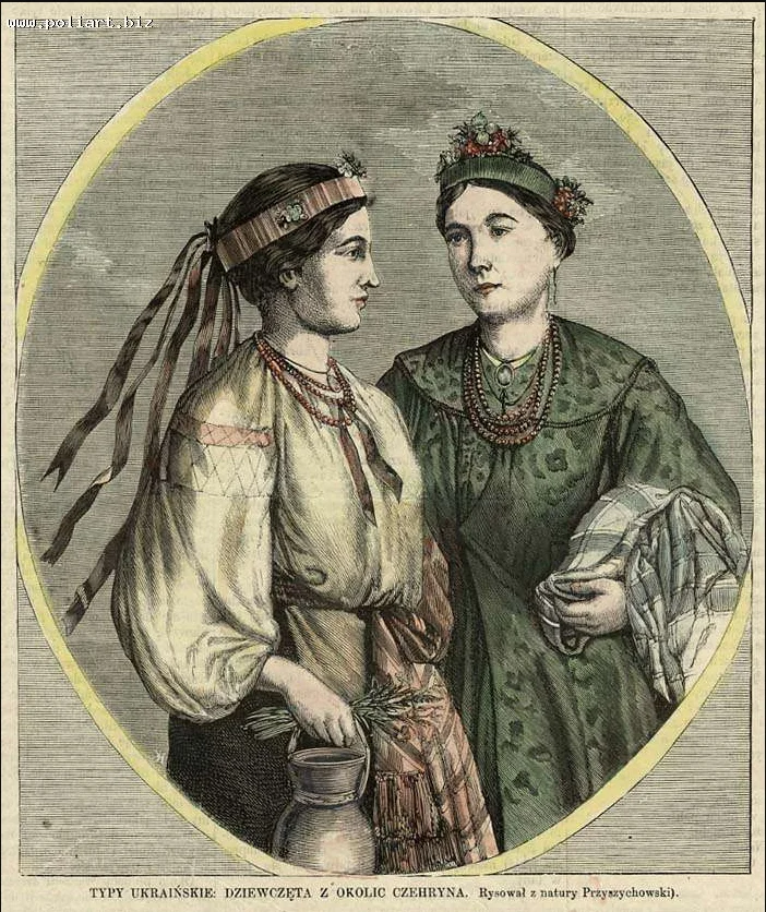 "Типи українські: дівчата з околиць Чигирина". Художник Казимір Пжишиховський. 1862 р.