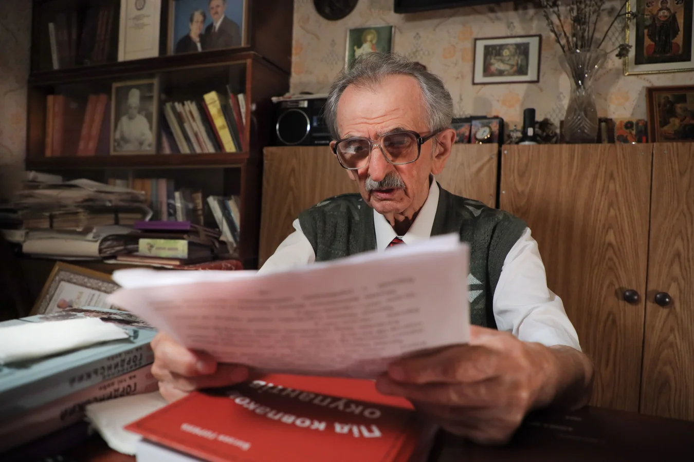 У квартирі Богдана Гориня панує напівтемрява: важкі штори ховають від яскравого сонця бібліотеку й картини на стінах, які подарували митці-шістдесятники, друзі родини. На столі лежить товстенький двотомник пана Богдана — "Під ковпаком окупантів", що побачив світ 2024 року. Трохи далі — тритомник "Не тільки про себе" й ще кілька його книжок. У свої 89 років чоловік і далі невтомно працює. Хоче встигнути якнайбільше розповісти про часи, які передували Незалежності.