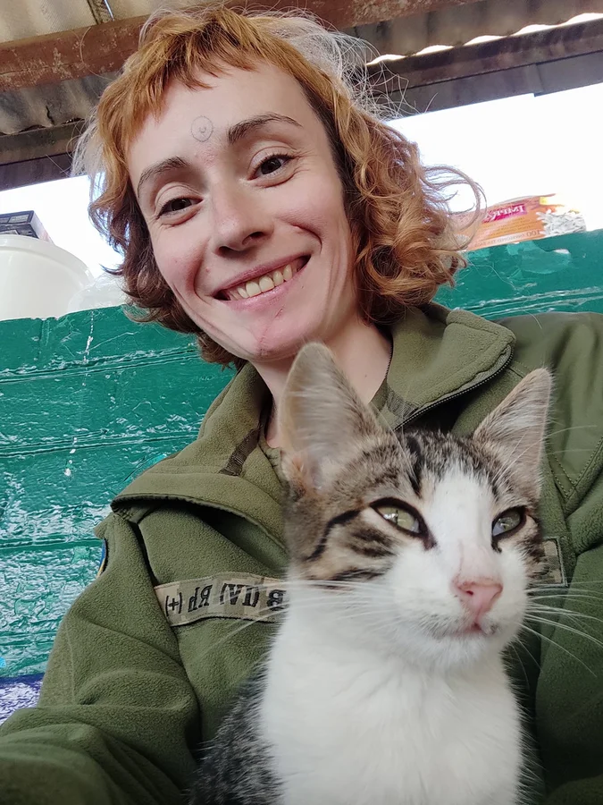 У мене на руках спить кошеня. Я військовий медик. Офіцер.