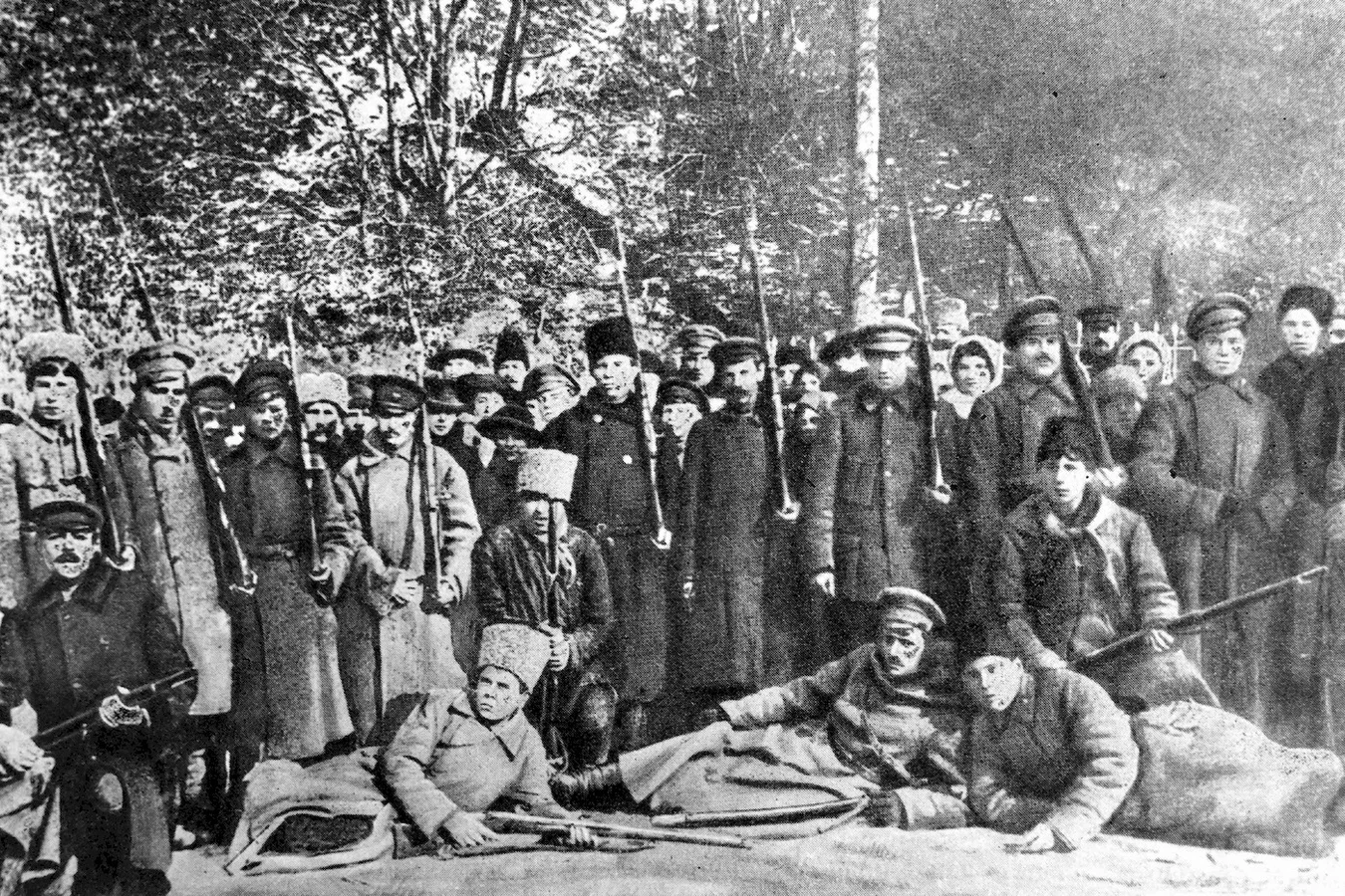 Група озброєних робітників — учасників Січневого заколоту, 1918 рік