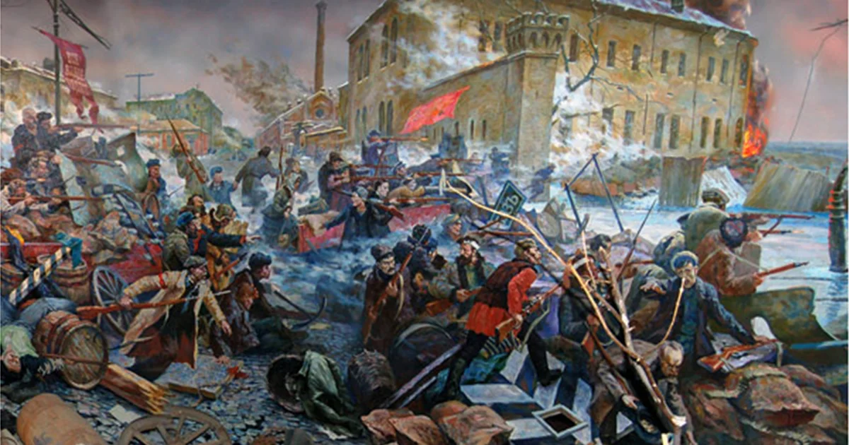 Фрагмент зображення у музеї заводу "Арсенал", що показує бій біля заводу