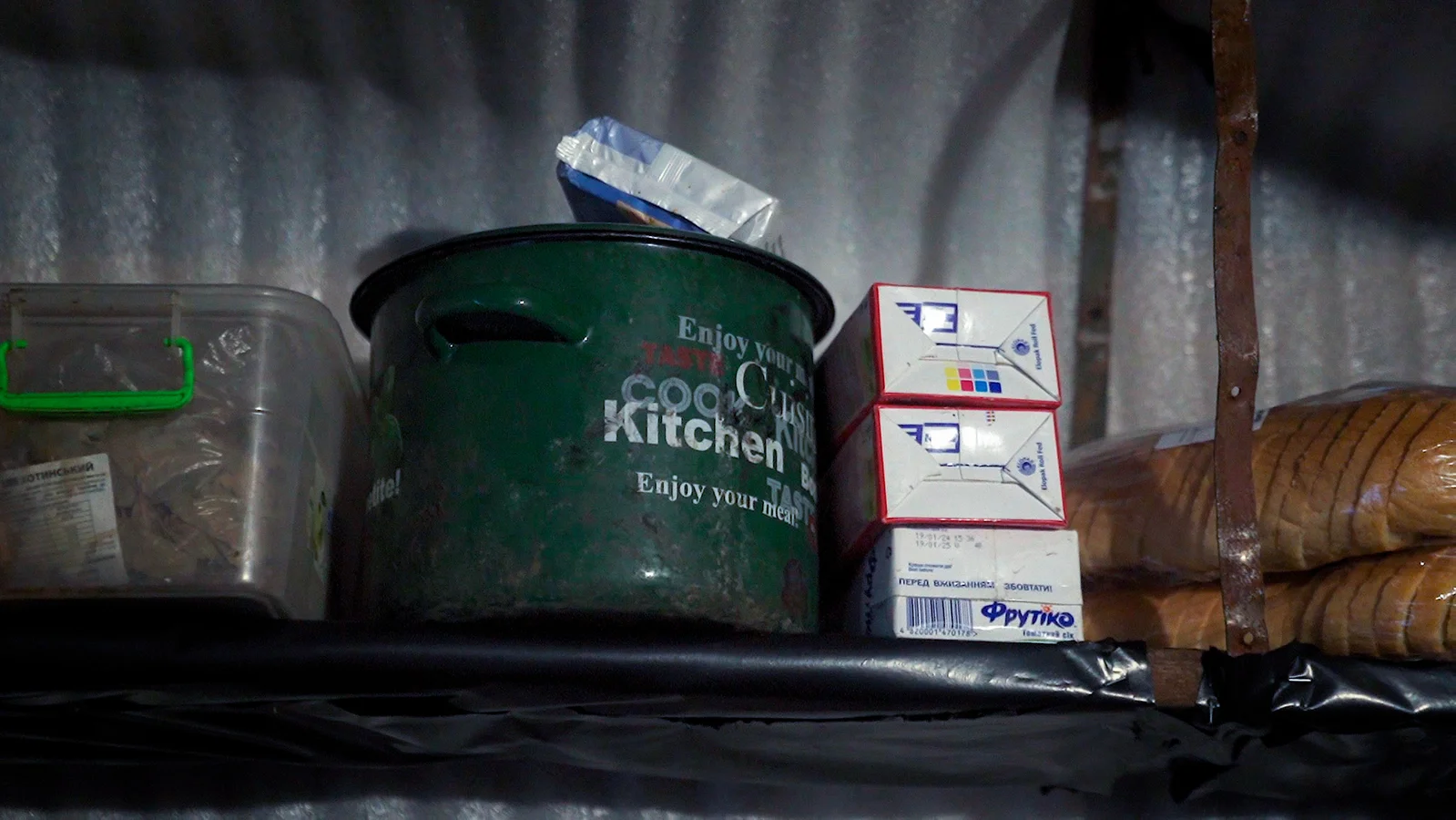 Але побут тут стерпний. Є інтернет, газова пічка, електрика і спальні місця. Туалет — надворі. З бійцями живе киця, прибилося декілька собак. У вільний час готують їсти, грають у мобільні ігри та спілкуються з рідними — при цьому довколишню ситуацію контролюють без упину. Військові хотіли б, щоб цього вільного часу було менше й можна було частіше завдавати удари у відповідь. Але бракує снарядів: на 10-20 виходів від росіян — 2-5 від нас. Користуються гарматою 1970-х, але вона справна й досить точна. Говорять, що донати — це чудово, але ще патріотичніше прийти на фронт солдатом.