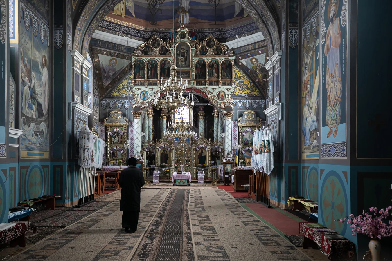 У церкві на стільцях для старших людей постелені теплі шалики і пледи. Там можна сидіти й годинами роздивлятись розписи. У часи заборони всього українського за їхніми сюжетами можна було вивчати історію України. А ще шукати… тризуба. У 1930-х роках українські художники часом ховали його у вигадливих віньєтках. Це був своєрідний протест проти полонізації. Так само ховали символічні могили січових стрільців. Отець нам показав місце під склепінням, де сховане зображення тризуба.