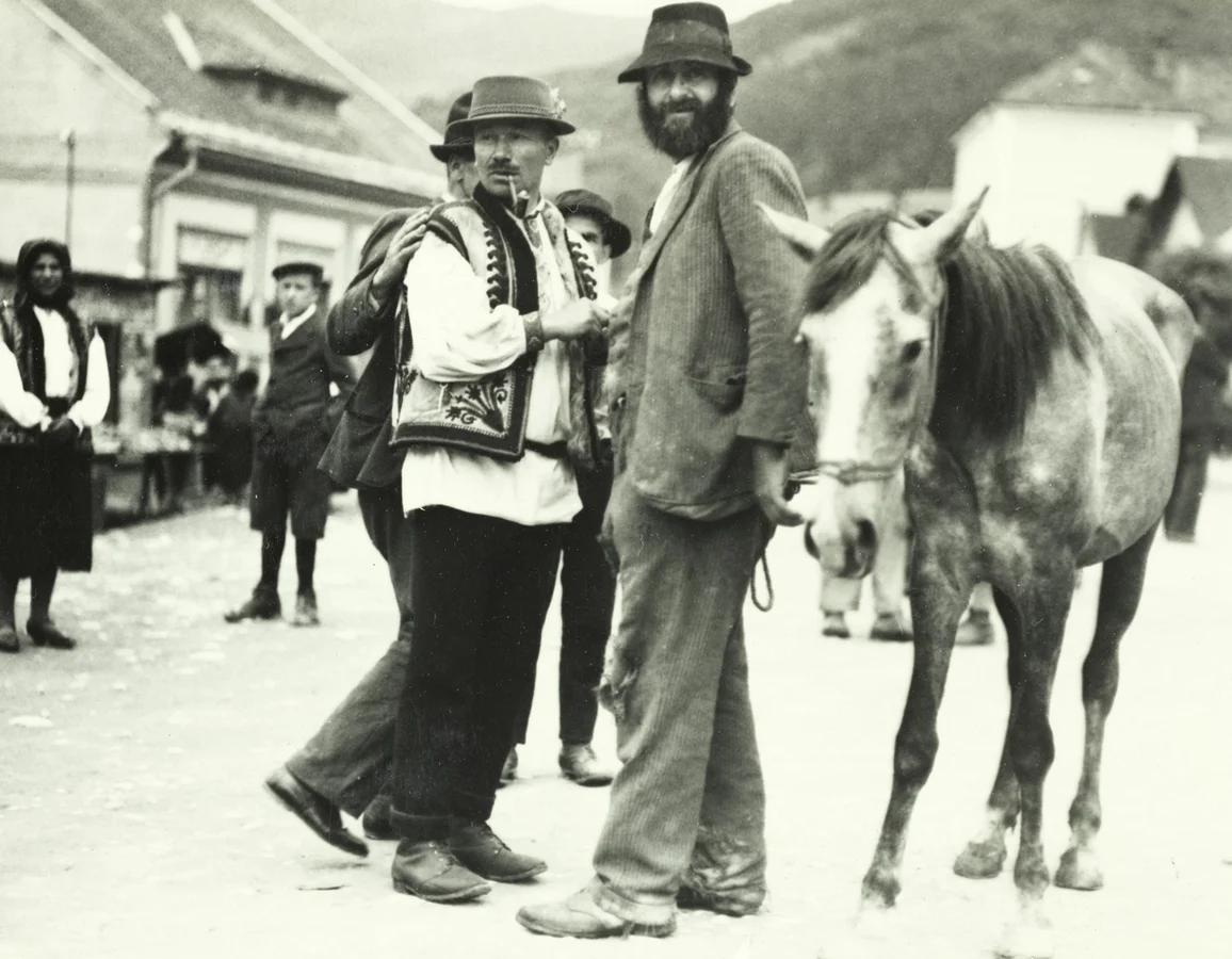 Гуцули та євреї на Закарпатті, 1939 рік. Фотограф Калман Сьолльоші