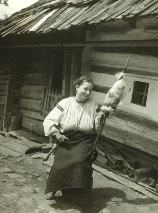 Гуцулка за прядінням, 1939 рік. Фотограф Калман Сьолльоші