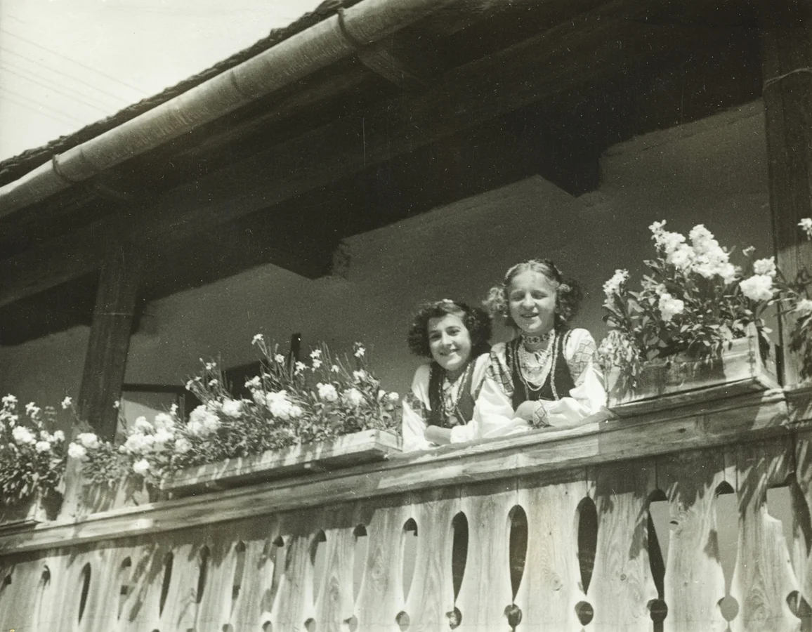 Дівчата на ґанку будинку у Хусті, 1939 рік. Фотограф Калман Сьолльоші
