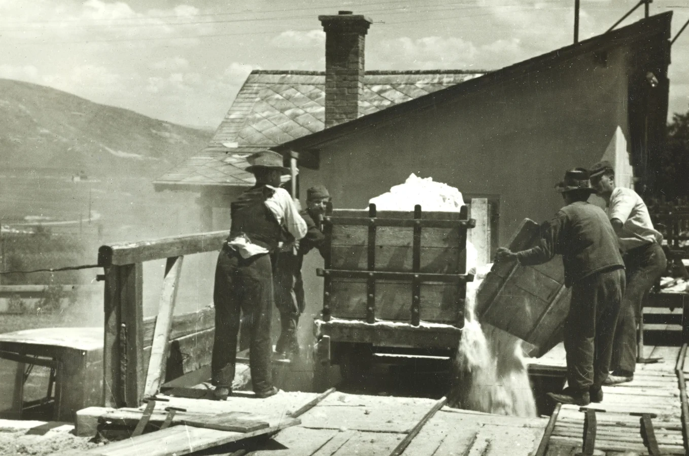 Працівники соляної шахти в Солотвині, 1939 рік. Фотограф Калман Сьолльоші