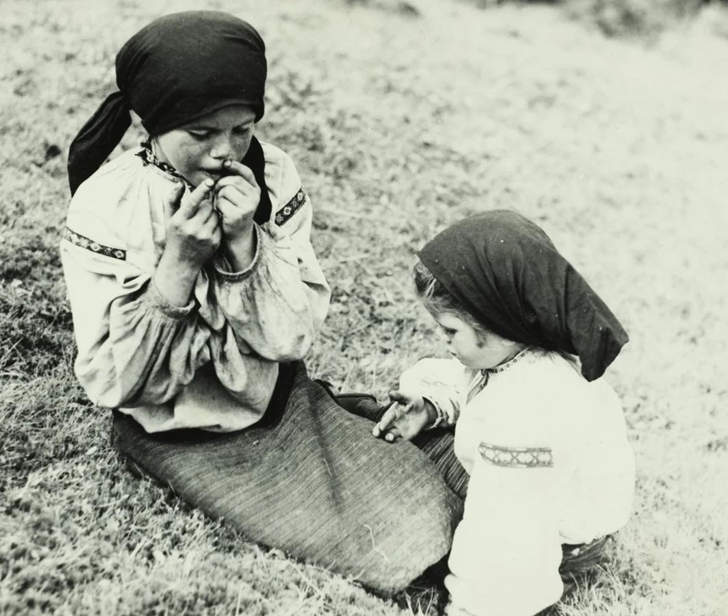 Юні гуцулики на Закарпатті, 1939 рік. Фотограф Калман Сьолльоші