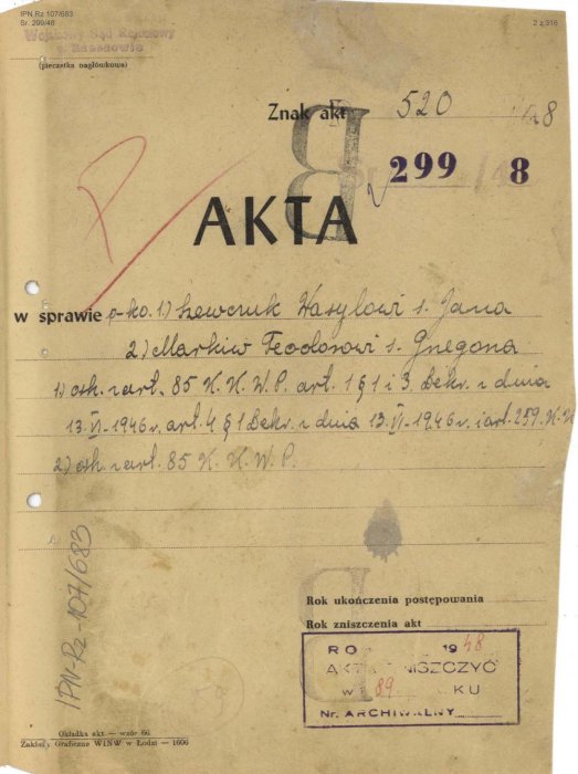 Судовий процес мав формальний характер. Обвинувачення будувалося на свідченнях колишнього повстанця, який перейшов на бік влади, аргументи захисту до уваги не бралися. Вирок був визначений наперед. 8 червня 1948 року польський окупаційний суд у Ряшеві засудив отця Василя Шевчука до смертної кари.