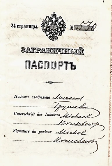 Закордонний паспорт Михайла Грушевського з відмітками