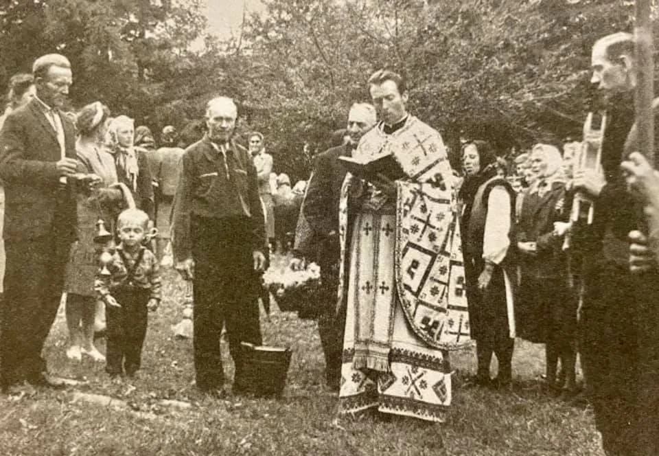 Великдень у Космачі, чин освячення проводить отець Василь Романюк, 1969 рік