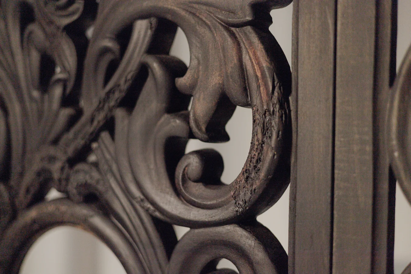Я вирішила, що дерево, яке скоро зникне, буде моїм "співавтором", тож використала його згоріле тіло як інструмент малювання. Роботи для експозиції "У ядрі" створені з часточок дерева, мого рідного міста, яке, сподіваюся, не повторить долю першого.