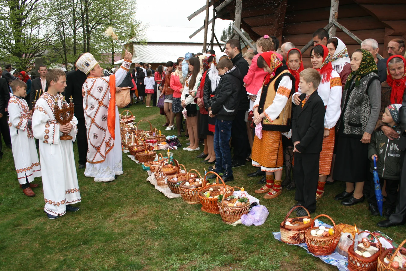 Освячення пасок біля церкви Св. Петра і Павла у селі Космач Косівського району Івано-Франківської обл. 2013 рік
