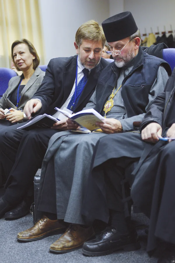 Ігор Скочиляс із митрополитом Ігорем (Возьняком) під час міжнародної наукової конференції з історії Галицької митрополії. Львів, листопад 2013 року