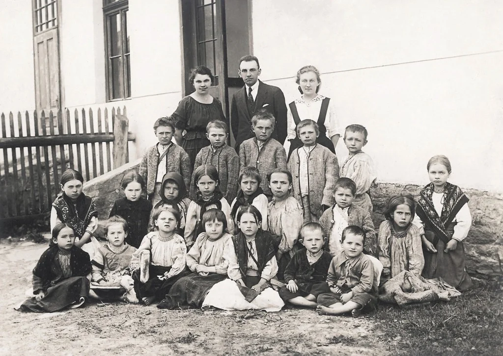 Школярі з учителем у селі Підплеша (Закарпаття), 1920-ті роки
